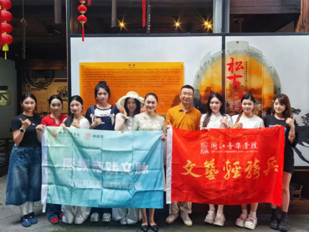 2025年6月30日至7月2日,为深入探寻南戏文脉,加强濒危剧种的保护与研究,浙江音乐学院戏剧系徐耀芳老师、张永明老师带领8名越剧专业学生,在秉持“赓续南戏文脉”宗旨的基础上遵循学院所倡导的“5+N”实践范式,奔赴“中国戏曲活化石”——松阳高腔的故乡浙江省松阳县,开展了为期三天的深度调研学习活动。此次“赓续南戏文脉”社会实践聚焦松阳高腔的曲牌保护、传承现状与创新发展,旨在为这一珍贵非遗的存续注入青春力量。