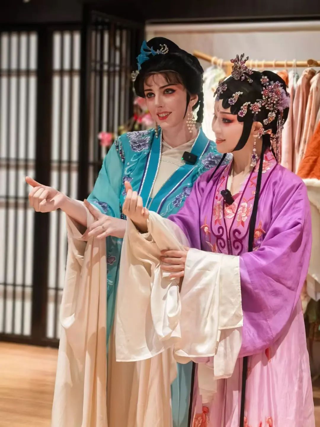 “原来看起来这么简单的甩水袖,做起来一点也不简单啊”。德国知名博主海雯娜(Heyden)正跟着金彩芳教授反复练习越剧《牡丹亭》的水袖动作。德国姑娘海雯娜是一位拥有40万粉丝的抖音博主,全球拥有超过百万活跃粉丝。当她终于成功让一米长的雪白水袖在空中划出完美弧线时,现场爆发出热烈掌声。海雯娜(Heyden)用中文感叹:“越剧比芭蕾更考验肢体控制!”