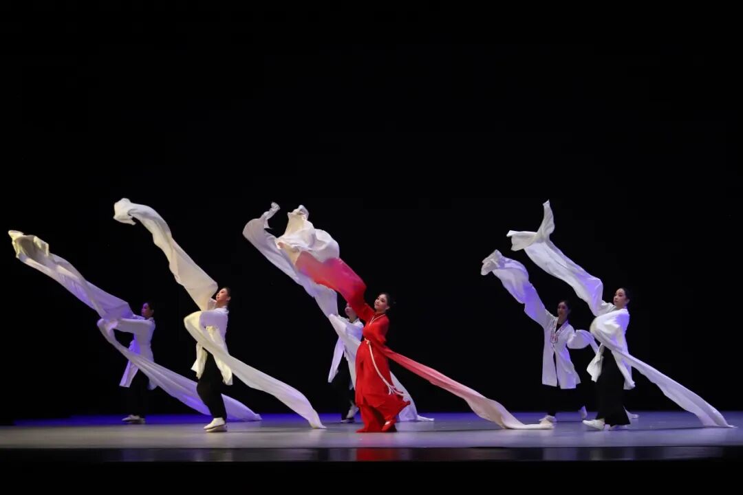 演出现场,金彩芳教授与学生们倾情演绎了《牡丹亭·幽媾》《蝴蝶梦·劈棺》《红楼梦·葬花》等系列越剧经典折子戏,剧目纷呈,令在场师生深深沉浸于传统戏曲艺术之中。演出尾声,金教授率领全体花旦学生呈现了精彩的水袖集体展示,只见长袖翻飞,意韵悠长,充分展现了越剧艺术的独特魅力,整场表演掌声雷动。
