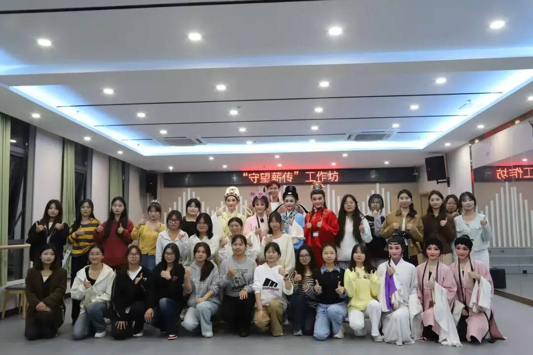 演出结束后,金彩芳教授携学生带领黄梅戏专业的学生跨剧种体验越剧唱腔念白与表演,深入感受不同戏曲艺术的特色与魅力;而在安庆医药高等专科学校,学生们则通过亲身体验《天上掉下个林妹妹》片段,对越剧艺术有了全新的认识和理解。“守望薪传”工作坊的开展让大家沉浸式体验传统戏剧的独特魅力,进一步加深对越剧艺术的热爱,让越剧艺术的传播从单向的展示,变为了双向的奔赴。