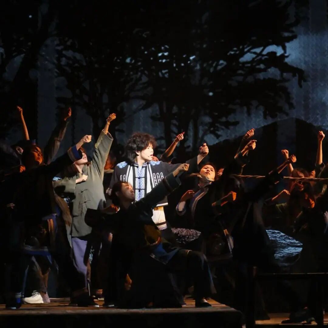 音乐剧《有凤来仪》以“凤凰”为线索,从畲族的古老信仰出发,串联起1944年与2025年两个时空。当美国飞行员奎英隶坠落在浙南畲乡,命悬一线之际,畲族少女蓝翠翠与大学生张振华挺身而出,用热血与善意书写了一段中美人民并肩抗战的壮丽篇章。
