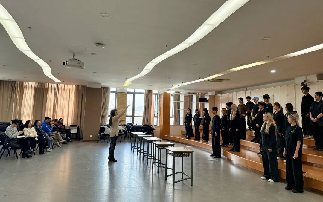 讲座与工作坊作为本次质量周的亮点,从理论建构到身心训练,构建起多维度的艺术对话空间。三场讲座中,徐延安老师以《越音有你·徐徐而来》带领师生沉浸于越剧声韵之美;张博老师解析《中文音乐剧唱段的戏剧叙事与情感表达》;李伟老师则分享《我心目中的现代戏曲经典剧目》,展现戏曲艺术的当代传承。三场工作坊则聚焦身心开发与艺术表达:王娜柳老师引导学生《从身心准备到“关键瞬间”的启动》,周艳霞老师探索《呼吸在声情表达中的“酶性效应”》,那刚老师则系统锤炼《想象·感受·表现——演员核心素养》。这些内容紧密衔接教学改革目标,推动“教什么”向“如何学”的深层转变,为教学注入创新思维与跨学科视野。
