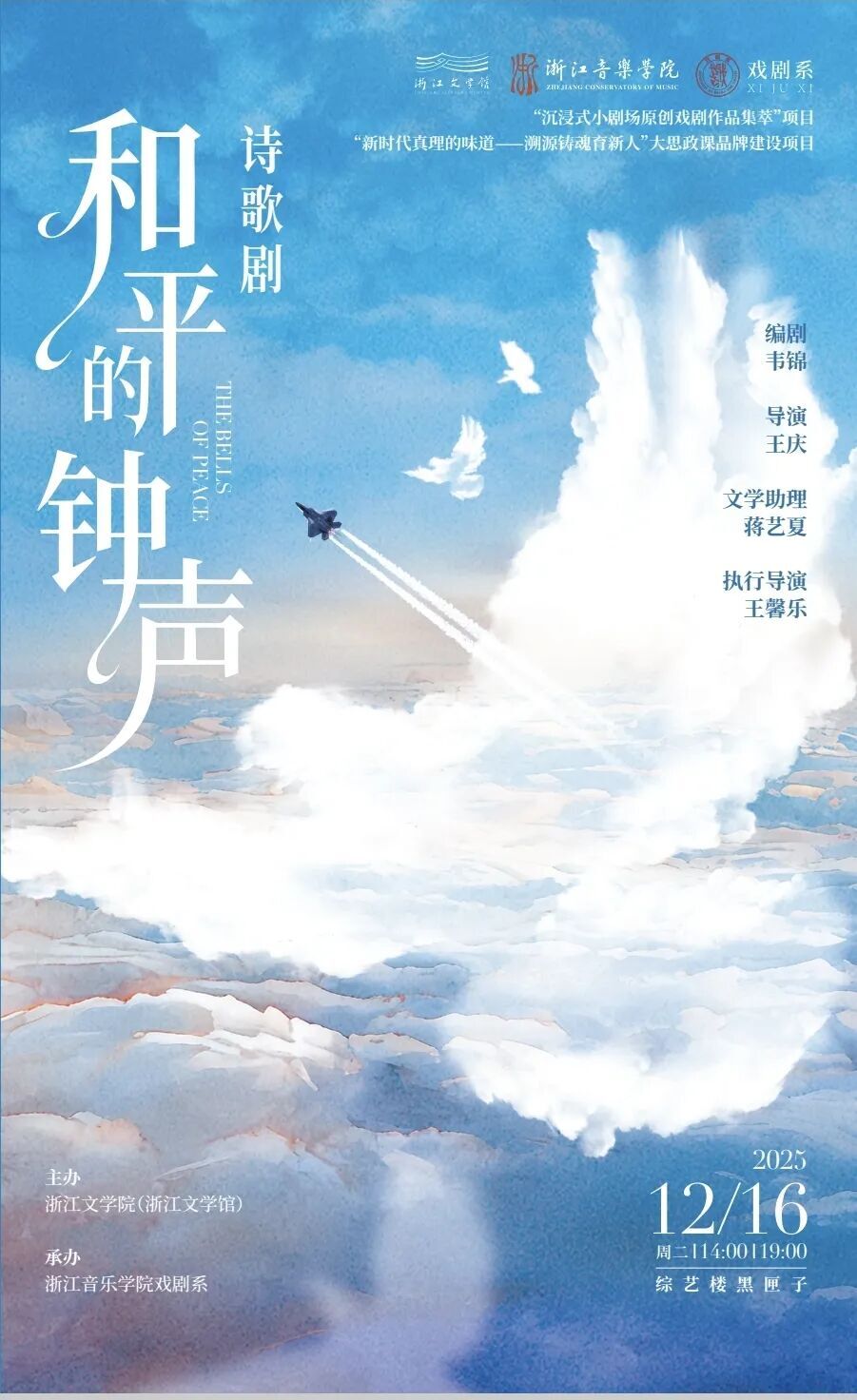 <!DOCTYPE html> <html> <head> </head> <body> <p> </p> <p>2025</p> <p> </p> <p> </p> <p> </p> <p style="line-height: 1.5; text-indent: 2em;"><span style="font-family: FangSong, serif; font-size: 18px;"><strong>和 平 的 钟 声 </strong></span></p> <p style="line-height: 1.5; text-indent: 2em;"> </p> <p style="line-height: 1.5; text-indent: 2em;"> </p> <p style="line-height: 1.5; text-indent: 2em;"> </p> <p style="line-height: 1.5; text-indent: 2em;"><span style="font-family: FangSong, serif; font-size: 18px;">诗歌剧 《和平的钟声》</span></p> <p style="line-height: 1.5; text-indent: 2em;"><span style="font-family: FangSong, serif; font-size: 18px;">12/16 14:00/19:00</span></p> <p style="line-height: 1.5; text-indent: 2em;"><span style="font-family: FangSong, serif; font-size: 18px;">浙江音乐学院黑匣子剧场</span></p> <p style="line-height: 1.5; text-indent: 2em;"><img style="display: block; margin-left: auto; margin-right: auto;" src="/attachment/20251230/1ea2856ad5adc9b67d646da0847ce7cb/600.jpeg" data-imgfileid="100021527" data-ratio="0.6666667" data-s="300,640" data-type="jpeg" data-w="1080" data-src="/attachment/20251230/1ea2856ad5adc9b67d646da0847ce7cb.jpeg" /></p> <p> </p> <p style="line-height: 1.5; text-indent: 2em;"><span style="font-family: FangSong, serif; font-size: 18px;">钟鸣从山岭深处传来</span></p> <p style="line-height: 1.5; text-indent: 2em;"><span style="font-family: FangSong, serif; font-size: 18px;">它穿过硝烟和冰霜,落到大江南北</span></p> <p style="line-height: 1.5; text-indent: 2em;"><span style="font-family: FangSong, serif; font-size: 18px;"> 钟声呼唤着</span></p> <p style="line-height: 1.5; text-indent: 2em;"><span style="font-family: FangSong, serif; font-size: 18px;">那里也有人在守望,在抵抗,在拼命活着</span></p> <p style="line-height: 1.5; text-indent: 2em;"> </p> <p><img style="display: block; margin-left: auto; margin-right: auto;" src="/attachment/20251230/9673bfc029d68bb644541212dcc9f244/600.jpeg" data-imgfileid="100021526" data-ratio="0.6666667" data-s="300,640" data-type="jpeg" data-w="1080" data-src="/attachment/20251230/9673bfc029d68bb644541212dcc9f244.jpeg" /></p> <p style="line-height: 1.5; text-indent: 2em;"><span style="font-family: FangSong, serif; font-size: 18px;">钟声再次响起</span></p> <p style="line-height: 1.5; text-indent: 2em;"><span style="font-family: FangSong, serif; font-size: 18px;">轻轻震动破旧的瓦罐</span></p> <p style="line-height: 1.5; text-indent: 2em;"><span style="font-family: FangSong, serif; font-size: 18px;">它越过山岭</span></p> <p style="line-height: 1.5; text-indent: 2em;"><span style="font-family: FangSong, serif; font-size: 18px;">飞向天空</span></p> <p> </p> <p><img style="display: block; margin-left: auto; margin-right: auto;" src="/attachment/20251230/d111d871547cc95b5195fccf47d27904/600.jpeg" data-imgfileid="100021528" data-ratio="0.6675926" data-s="300,640" data-type="jpeg" data-w="1080" data-src="/attachment/20251230/d111d871547cc95b5195fccf47d27904.jpeg" /></p> <p> </p> <p style="text-indent: 2em; line-height: 1.5;"><span style="font-family: FangSong, serif; font-size: 18px;">钟声飘向群山</span></p> <p style="text-indent: 2em; line-height: 1.5;"><span style="font-family: FangSong, serif; font-size: 18px;">那是狂风暴雨与闪电雷霆交织的夜晚</span></p> <p style="text-indent: 2em; line-height: 1.5;"><span style="font-family: FangSong, serif; font-size: 18px;">那是人性与善意闪耀的夜晚</span></p> <p> </p> <p><img style="display: block; margin-left: auto; margin-right: auto;" src="/attachment/20251230/17f563867405b74983e7644df8041066/600.jpeg" data-imgfileid="100021524" data-ratio="0.6666667" data-s="300,640" data-type="jpeg" data-w="885" data-src="/attachment/20251230/17f563867405b74983e7644df8041066.jpeg" /></p> <p> </p> <p style="text-indent: 2em; line-height: 1.5;"><span style="font-family: FangSong, serif; font-size: 18px;">而在祖国的山岭里</span></p> <p style="text-indent: 2em; line-height: 1.5;"><span style="font-family: FangSong, serif; font-size: 18px;">同一声钟鸣</span></p> <p style="text-indent: 2em; line-height: 1.5;"><span style="font-family: FangSong, serif; font-size: 18px;">正唤醒另一群赤脚的青年</span></p> <p> </p> <p><img style="display: block; margin-left: auto; margin-right: auto;" src="/attachment/20251230/36ba8f2125189d033ec61d2cdf0a27ee/600.jpeg" data-imgfileid="100021525" data-ratio="0.6666667" data-s="300,640" data-type="jpeg" data-w="1080" data-src="/attachment/20251230/36ba8f2125189d033ec61d2cdf0a27ee.jpeg" /></p> <p> </p> <p style="text-indent: 2em; line-height: 1.5;"><span style="font-family: FangSong, serif; font-size: 18px;">钟声停顿了一下</span></p> <p style="text-indent: 2em; line-height: 1.5;"><span style="font-family: FangSong, serif; font-size: 18px;">像对烈士英魂的致意</span></p> <p style="text-indent: 2em; line-height: 1.5;"><span style="font-family: FangSong, serif; font-size: 18px;"> 然后,它骤然变得明亮、宽阔</span></p> <p style="text-indent: 2em; line-height: 1.5;"><span style="font-family: FangSong, serif; font-size: 18px;">无法阻挡</span></p> <p> </p> <p><img style="display: block; margin-left: auto; margin-right: auto;" src="/attachment/20251230/d43fefb192f3debf13b747af638cb69a/600.jpeg" data-imgfileid="100021529" data-ratio="0.6666667" data-s="300,640" data-type="jpeg" data-w="801" data-src="/attachment/20251230/d43fefb192f3debf13b747af638cb69a.jpeg" /></p> <p> </p> <p style="line-height: 1.5; text-indent: 2em;"><span style="font-family: FangSong, serif; font-size: 18px;">浙江音乐学院戏剧系联合马克思主义学院,推进大思政课品牌建设的项目“和平的钟声”。不仅是一场舞台艺术的实践,更是一堂生动深刻、入脑入心的“课程思政”公开课。该项目的创排与演出,深度融合了艺术教育的思想性与价值引领功能,在审美实践与